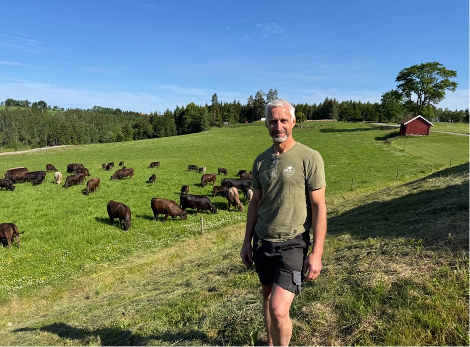 Friday morning, we began farms tour by Dyster farm, owned by Tove and Hohan Bjørneby who use the Monil virtual fence. 40 of their 210 hectares are pasture for their 55 cows, which are of their own breeds mixes based on Wagyu, Limousine, Hereford and some more. The farm has it own slaughterhouse and a farmshop.